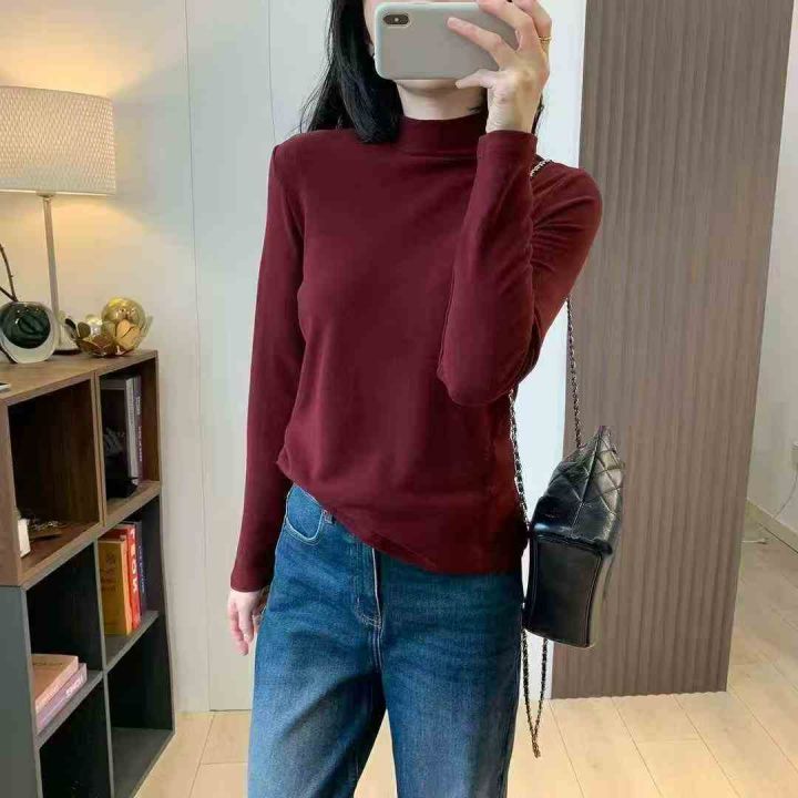 其他/其他 200件左右2025年秋冬新款高领内搭保暖加薄绒修身显瘦长袖打底上衣,做工质...